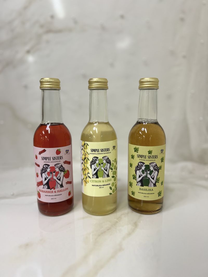 Ingår: 3 x 250 ml sockerlag (välj bland Basilika, Citron & Lime, Rabarber & Hallon)